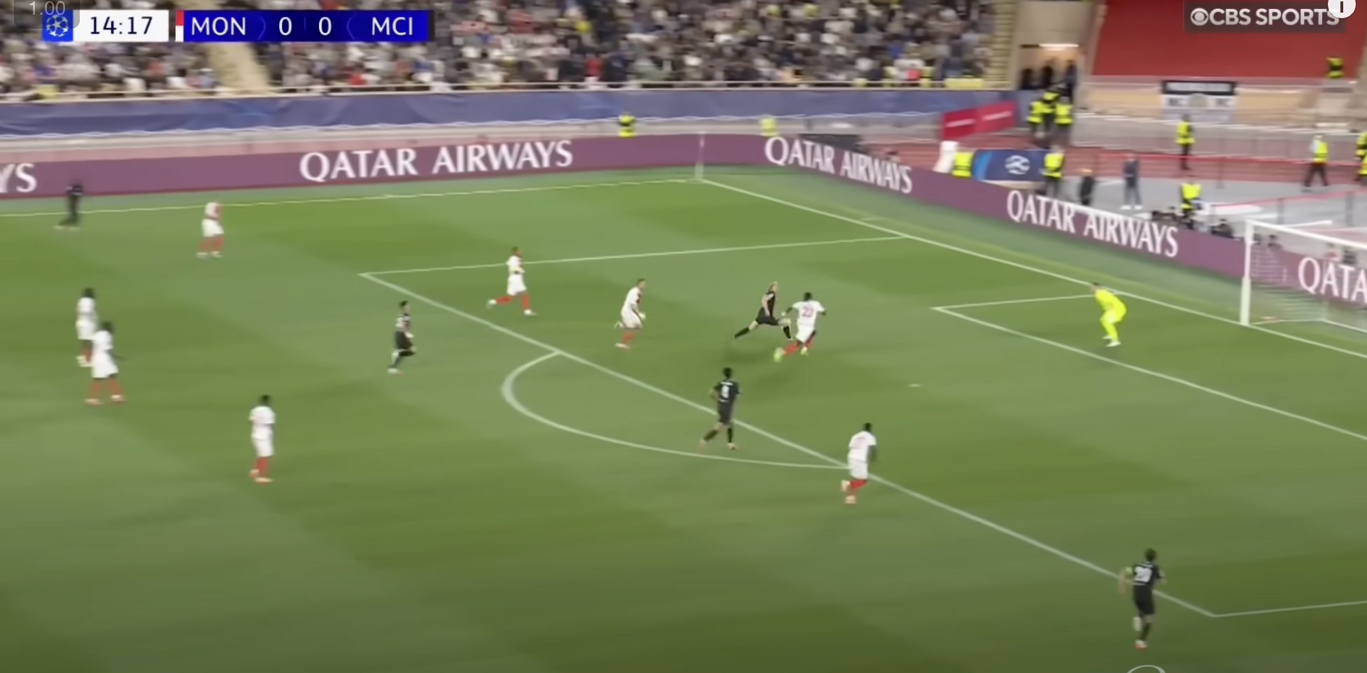 Against Monaco earlier in the week, Haaland opened the scoring with a run that's best described as, "he decided it's time to score now":