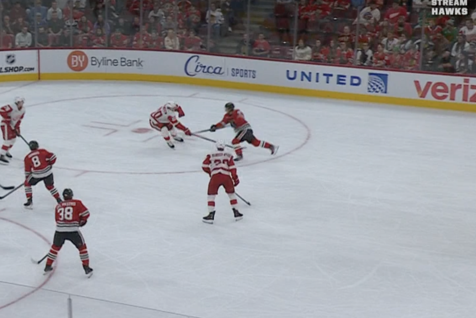 -Sam Rinzel started to look itchy. He gave up one goal by getting his pocket picked, and Hawks fans had better get used to that sight. This idea that he can walk into a top-pairing role after eight games above college is just so rickety. What happens if his first 10 games are U-G-L-Y? Is he going to Rockford then? How much rope do those eight meaningless games really buy him?