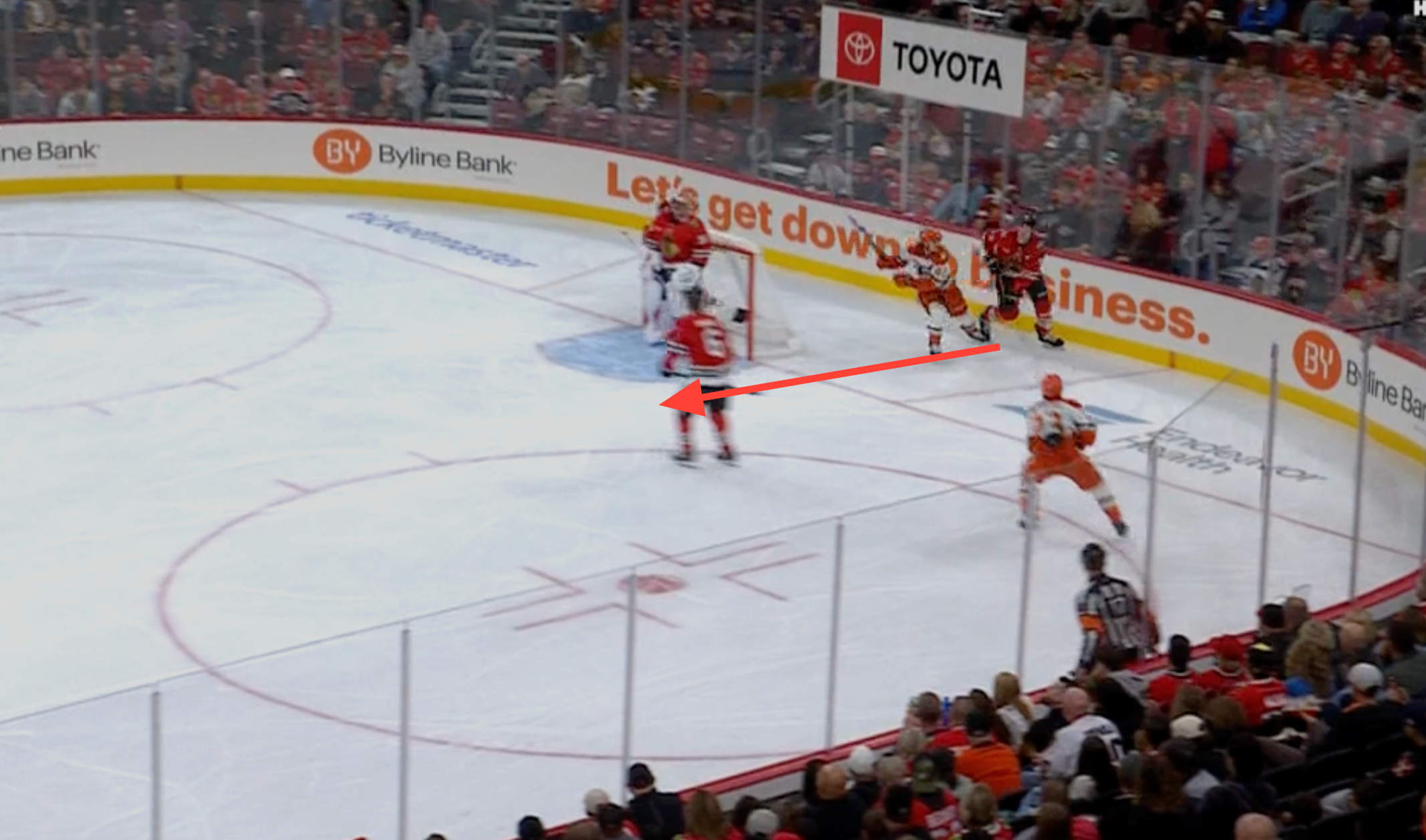 Secondly, last night, the Hawks really struggled in the 2nd period, some in the 1st. They were pinned in their own zone for long stretches, and the 38 Corsi share and 24 xG% in the middle frame attest to that. In the 3rd, Blashill clearly told his d-men to break the puck out through the middle: